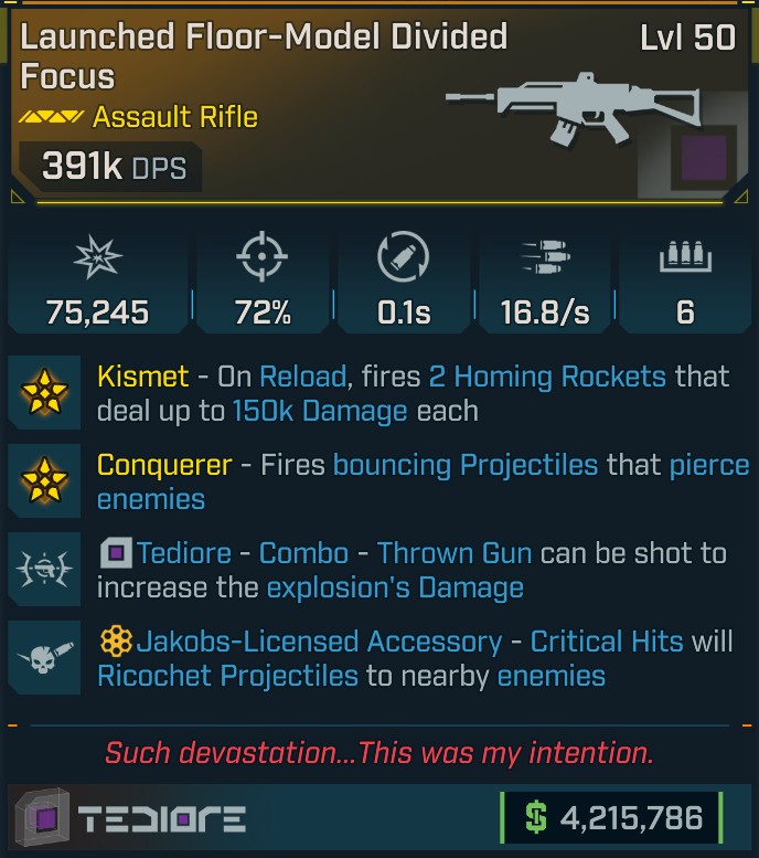 ⭐[MODDED] L50 DIVIDED FOCUS - 391K DPS - 16.8/s F.RATE - 0.1S RELOAD - TEDIORE COMBO EXPLOSION DMG⭐