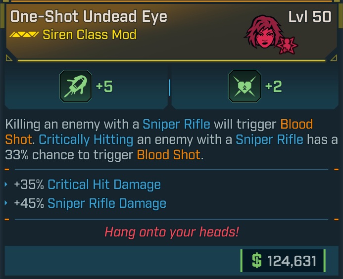 ⭐L50 ONE-SHOT UNDEAD EYE +5 BLOOD SHOT, +2 GRAVE VITALITY, +35% CRIT DMG, +45% SNIPER DMG⭐