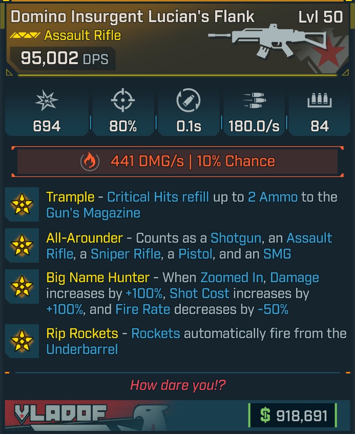 ⭐[MODDED] L50 LUCIAN'S FLANK - 95K DPS - 180/s FR - 0,1s AUTO RELOAD - ROCKETS - BNH - ALL-AROUNDER⭐