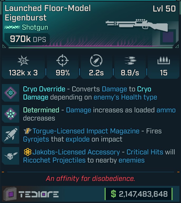 ⭐[MODDED PEARL] L50 EIGENBURST (CRYO) - 970K DPS - 99% ACC - 8.9 FR. - ON RELOAD 2 HOMING GYRO⭐
