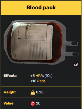 Blood pack [+5 HP/s (10s)+10 Rads] [Aid] x1000