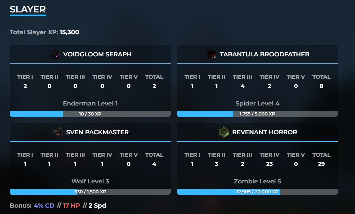 Slayers: Zombie 5 | Wolf 3 | Spider 4 | Enderman 1