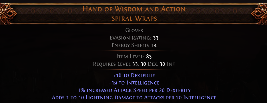 RISE OF THE ABYSS 2 SOCKETED Hand of Wisdom and Action UNIQUE GLOVES LVL 33 REQ INSANE DAMAGE GLOVES
