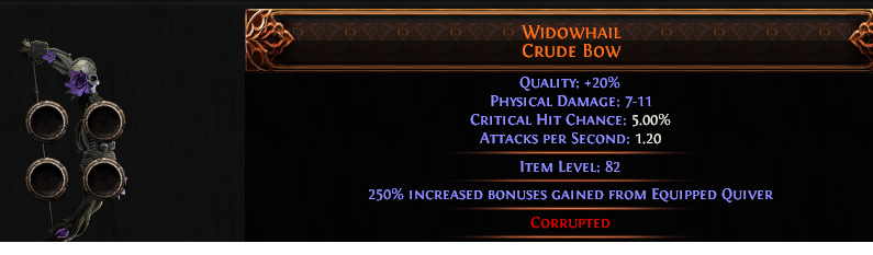 4 SOCKETED 20% QUALITY PERFECT WIDOWHAIL BOW CRUDE BOW 250% BONUSES GAINED FROM QUIVER