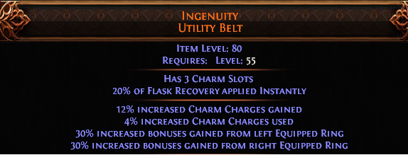 PERFECT INGENUITY BELT 30/30 BONUSES FROM RINGS 3 CHARM SLOTS DEADEYE FALLING THUNDER INVOKER MONK