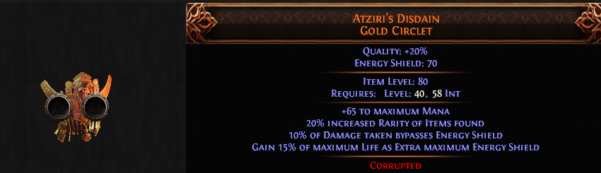 2 SOCKETED Atziri's Disdain Gold Circlet UNIQUE HELMET Chaos DoT LICH CONTAGION LICH WITCH