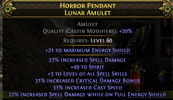 STORMWEAVER AMULET +3 ALL SPELL LVLS 31% CAST SPEED 49 SPIRIT 26% SPELL DMG 31% CRIT BONUS 22% SPELL