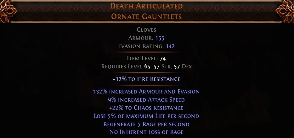 RISE OF THE ABYSSAL Death Articulated UNIQUE GLOVES LVL 65 REQ LAST LAMENT CROSSBOW LICH