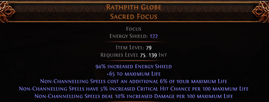2 SOCKETED Rathpith Globe SACRED FOCUS LVL 75 REQ SORCERESS FOCUS WITCH FOCUS BLOOD MAGE FOCUS