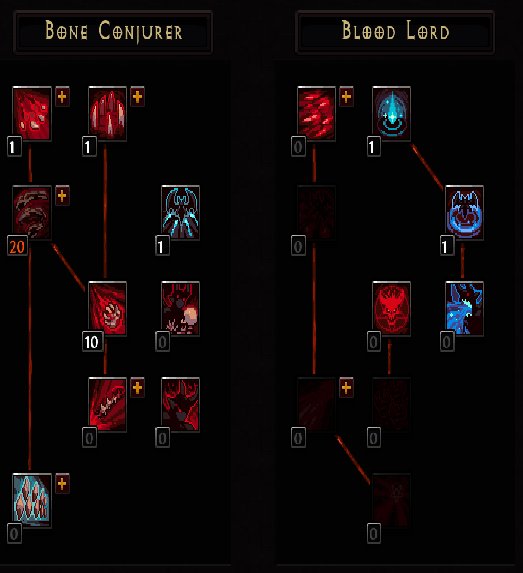 This Blood Bolts combination should be used across all of your passive tree variants. The key node here is Wave of Blood, which should be maxed out for the extra Movement Speed, FCR, and Arcane Damage. These bonuses are simply too efficient to ignore and add a lot of quality of life to the build, while also contributing meaningful damage.
