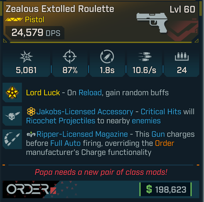 Roulette [Jakobs crit, Ripper auto] (Order pistol)