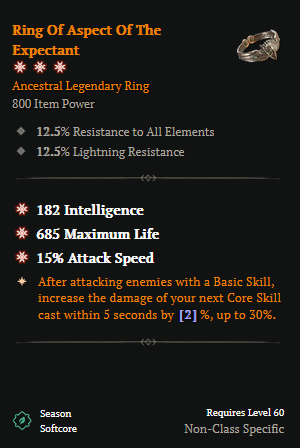 SEASON 10 3 GA RING INTELLIGENCE MAXIMUML LIFE ATTACK SPEED 3GA BONE SPIRIT NECROMANCER RING CASTER