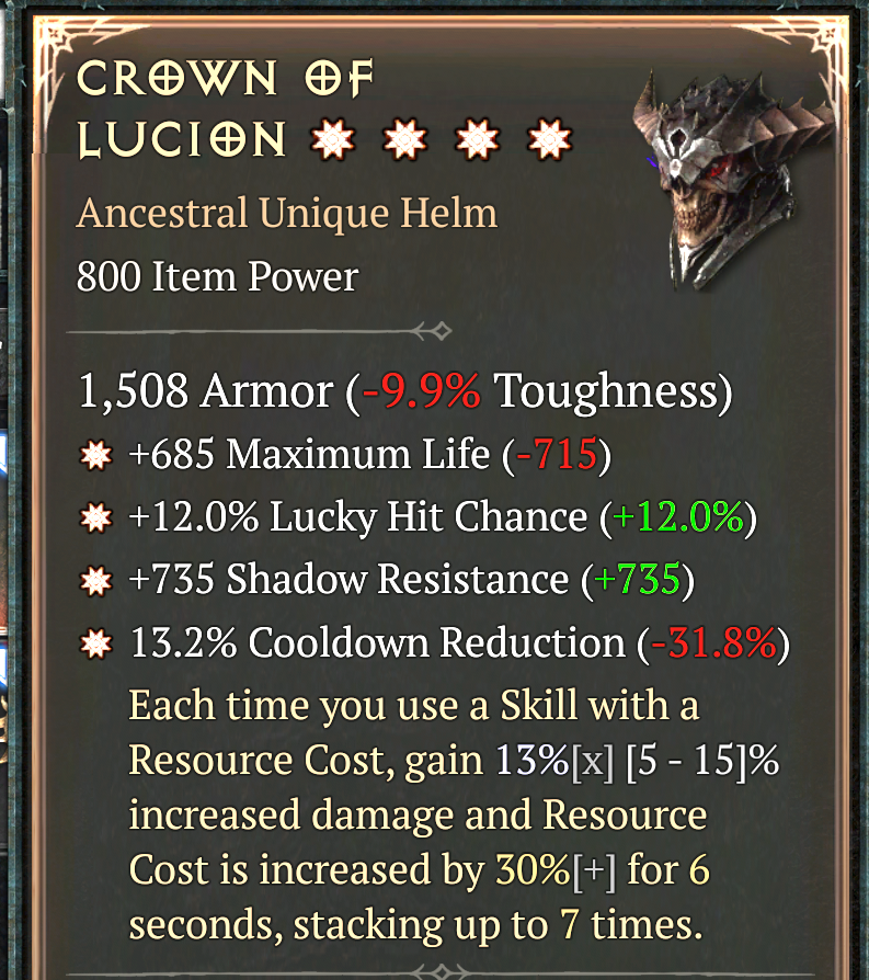 S12 ⭐ Diablo 4⭐ 4GA Crown of Lucion⭐ 13% Effect