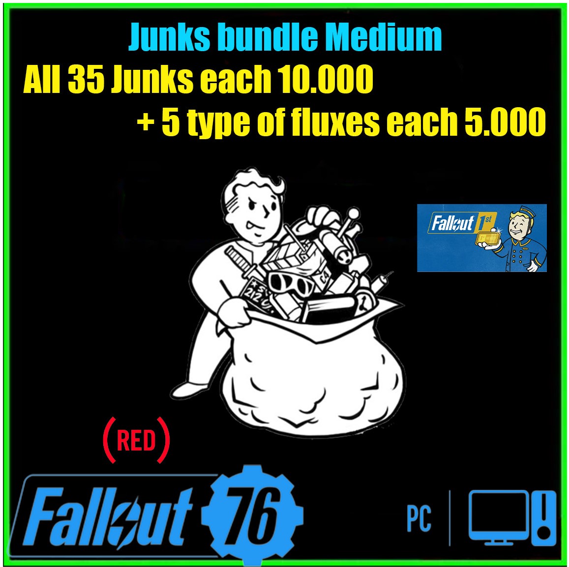 Aluminum scrap/Ballistic Fiber Scrap/Black Titanium Scrap/Bone Shards/Ceramic Scrap/Circuits/Coal/Concrete Scrap/Copper Scrap/Cork/Scrap/Crystal Shards/Excess Adhesive/Fiber Optics Bundle/Fiberglass Spool/Glass Shards/Gold Scrap/Lead Scrap/Loose Gears/Loose Screws/Loose Spring/Molded Plastic/Nuclear Waste/Raw Asbestos/Raw Cloth/Raw Fertilizer/Raw Leather/Raw Rubber/Silver Scrap/Steel Scrap/Ultracite Scrap/Waste Acid/Unrefined gunpowder/Waste Antiseptic/Waste Oil/Wood Scraps/Stable Cobalt Flux/Stable Crimson Flux/Stable Fluorescent Flux/Stable Violet Flux/Stable Yellowcake Flux.