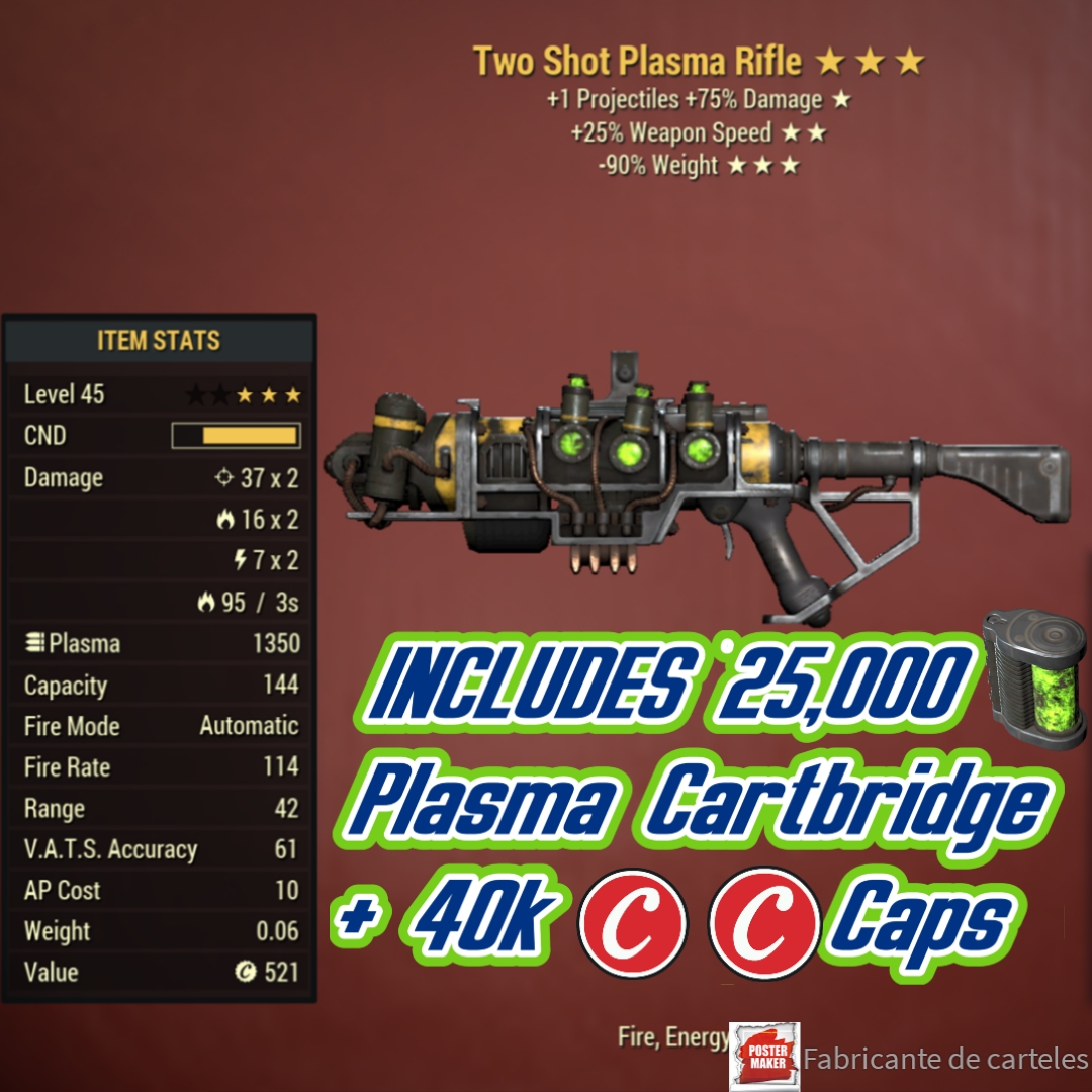Two Shot Plasma Rifle ( TS2590 - TS 25 90 ) + 40,000 CAPS + 25,000 Ammo