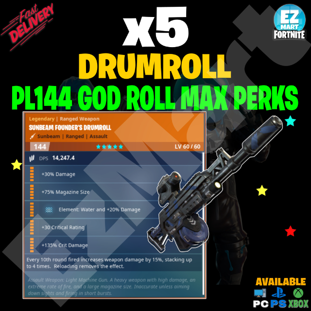 5 Founders Drumroll (Water) PL144 God Rolled Max Perks