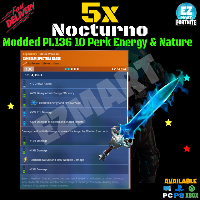 5 Modded Spectral Blade PL136 10 Perk Energy & Nature