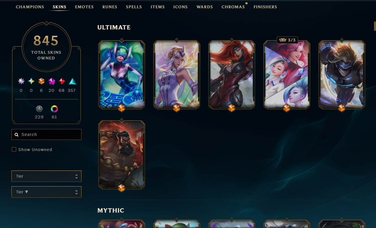 EUW/846 Skins/20 Mythic/6 Ultimate/68 Legendary/All Champions/Full Access