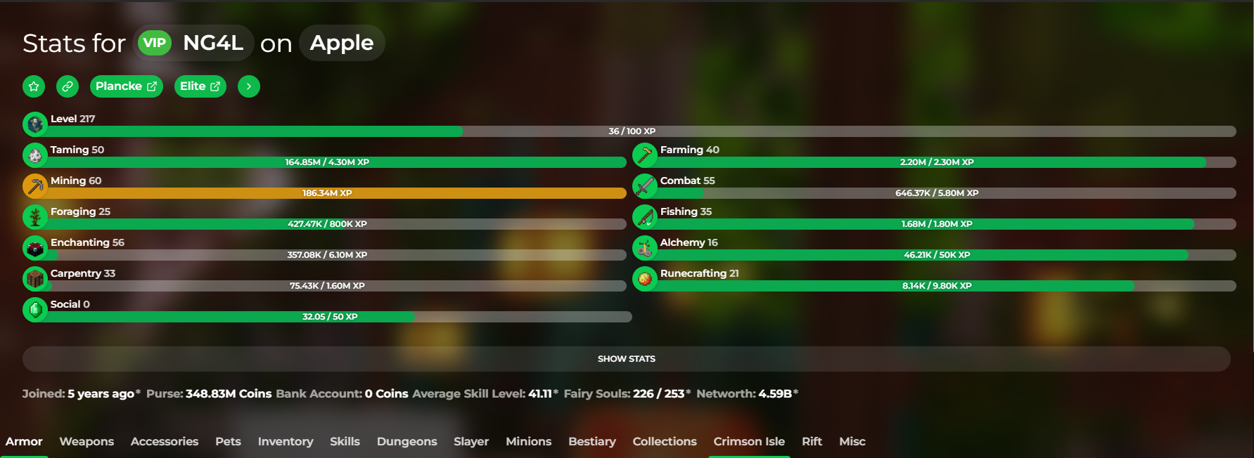 ✅ 217 Skyblock level