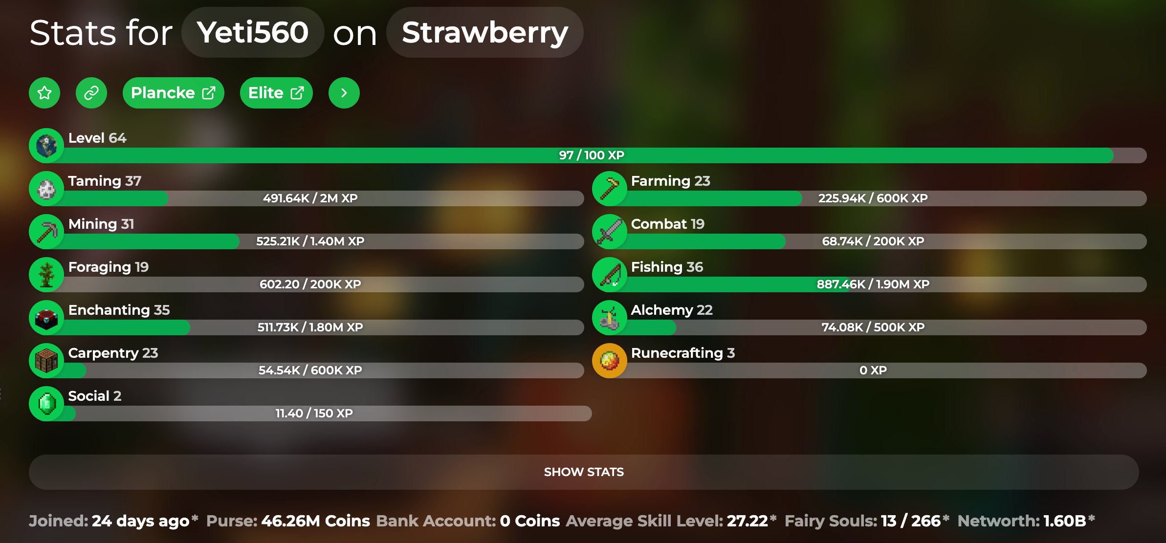 - Ultimate Skyblock Account https://sky.shiiyu.moe/stats/Yeti560/Strawberry