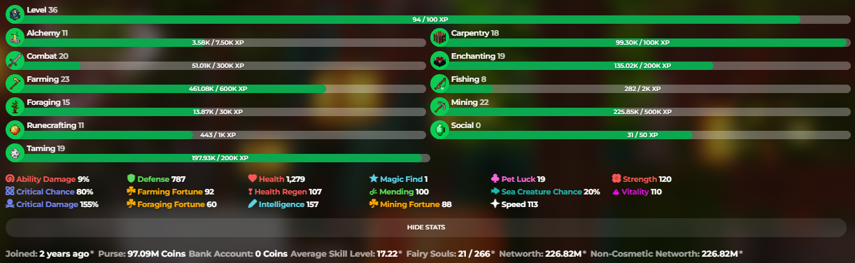 ✅❗️Solo-Coop | MVP+ | 36 SB lvl | 17.22 AVG | Cata 2 | 226.85M NW | Full accept | Hypixel SkyBlock❗️✅