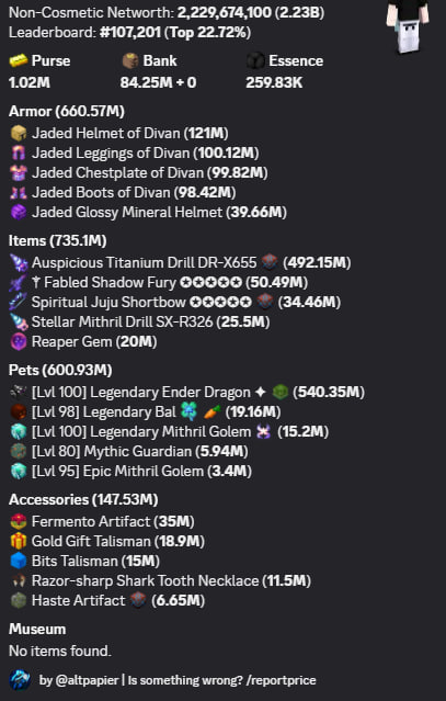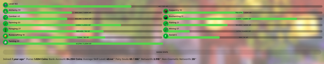 ☀️VIP | 182 SB LEVEL | 40 SA | 27 CATA | 8 HOTM | Slayers: 9/6/6/7 | 2.3B NW☀️