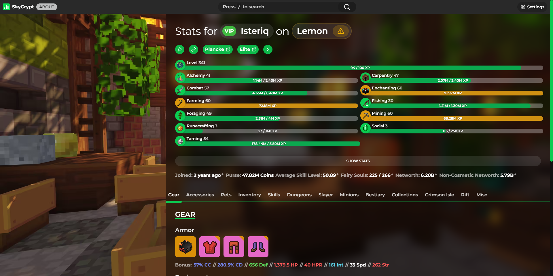Detailed statistics - https://sky.shiiyu.moe/stats/Isteriq/Lemon#Gear ⚡