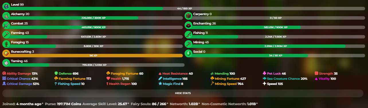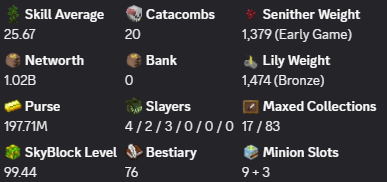 ✅❗️Solo-Coop | 99 SB lvl | 25.67 AVG | Cata 20 | 1.02B NW | Full accept | Hypixel SkyBlock❗️✅