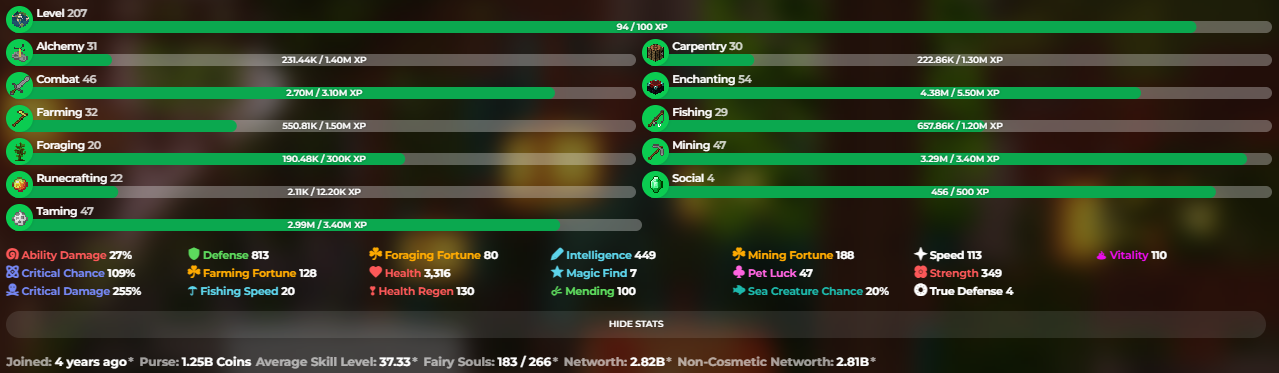 ✅❗️Solo-Coop | VIP | 207 SB lvl | 37.33 AVG | Cata 31 | 2.82B NW | Full accept | Hypixel SkyBlock❗️✅
