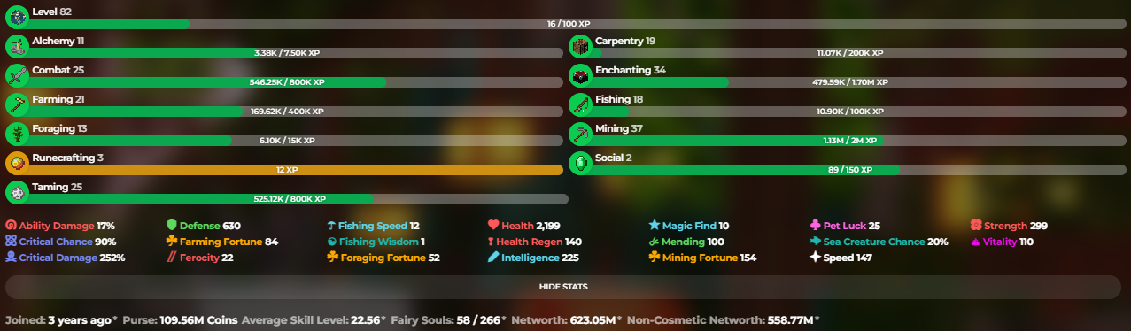 ✅❗️Solo-Coop | 82 SB lvl | 22.56 AVG | Cata 22 | 629.01M NW | Full accept | Hypixel SkyBlock❗️✅