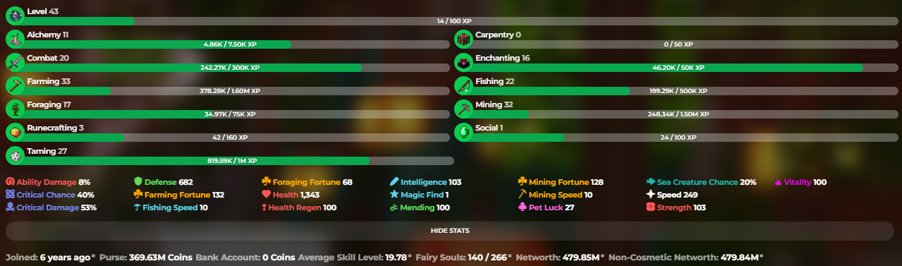 ✅❗️Solo-Coop | VIP | 43 SB lvl | 19.78 AVG | 479.85M NW | Full accept | Hypixel SkyBlock❗️✅