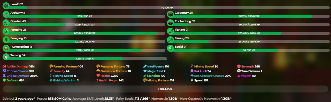 ✅❗️Solo-Coop | VIP | 102 SB lvl | 25.33 AVG | Cata 23 | 1.3B NW | Full accept | Hypixel SkyBlock❗️✅