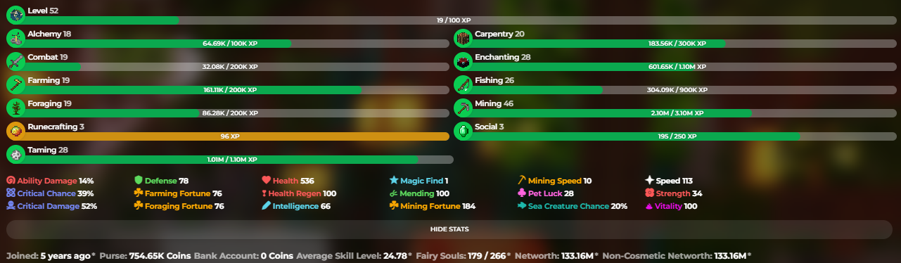 ✅❗️Solo-Coop | 52 SB lvl | 24.78 AVG | 133.52M NW | Full accept | Hypixel SkyBlock❗️✅