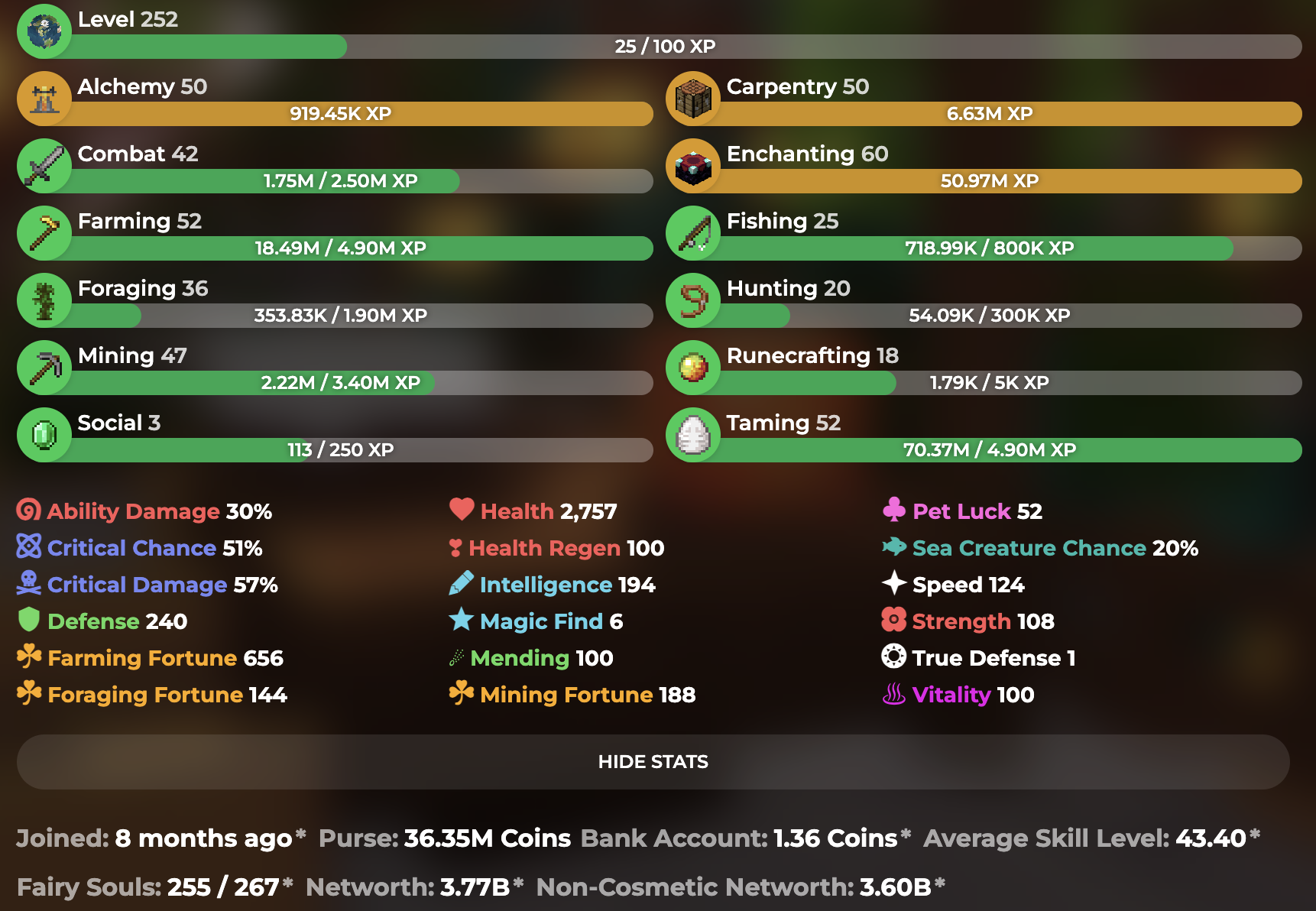 Slayers: Revenant - 7; Tarantula - 7; Sven - 7; Voidgloom - 5; Riftstalker - 4; Inferno - 0;