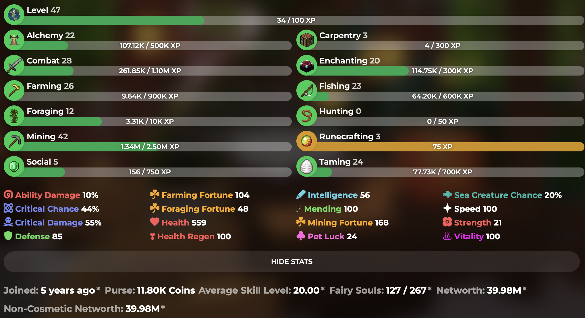 SkyBlock Lvl: 47.34