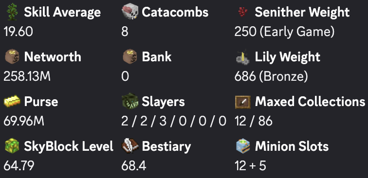 Slayers: Revenant - 2; Tarantula - 2; Sven - 3; Voidgloom - 0; Riftstalker - 0; Inferno - 0;