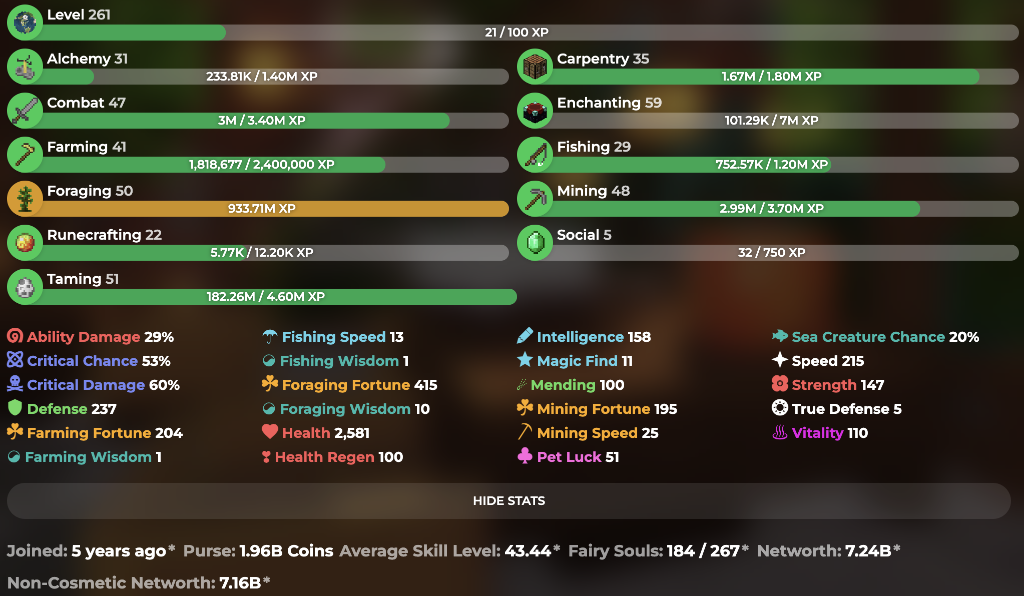 SkyBlock Lvl: 261.21