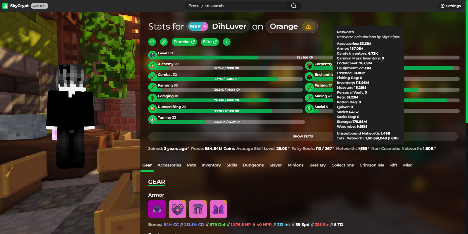 Detailed statistics - https://sky.shiiyu.moe/stats/DihLuver/Orange#Gear ⚡
