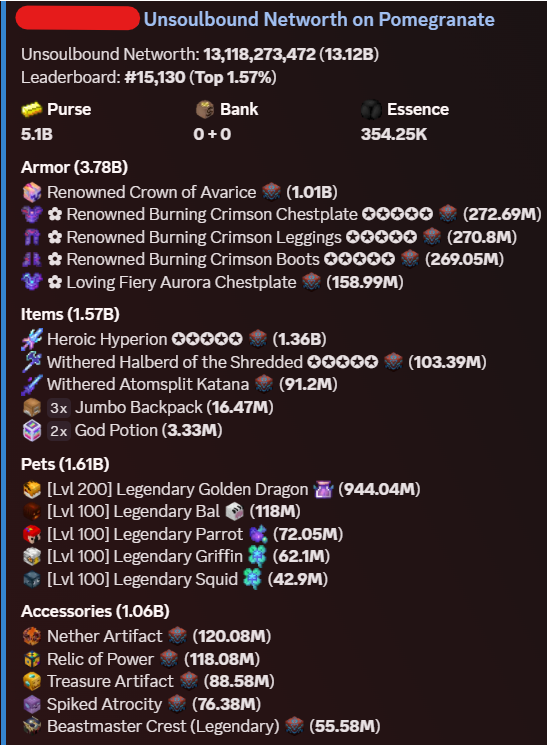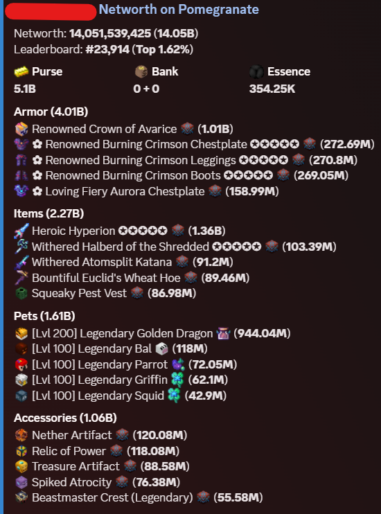 • 1B Worth Accessories (Nether Artifact, Treasure Artifact, Spiked Atrocity, Many More)