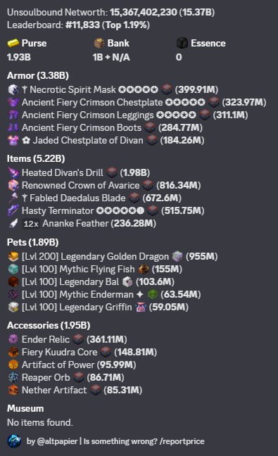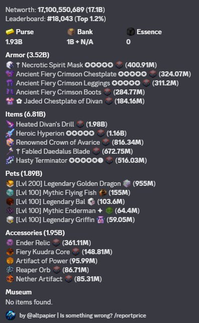 Hypixel skyblock ISLAND/PROFILE ( Networth : 17.1B ( 15.37B UNSOULBOUND / 99% risk free!)