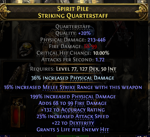 700 DPS MONK QUARTERSTAFF 23% ATTACK SPEED 99 FIRE DMG 22 DEX ACCURACY INVOKER MONK STAFF