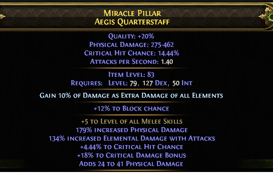 QUARTERSTAFF PHYSICAL+130% ELEMENTAL DMG + CRIT CHANCE+ CRIT BONUS + 5 MELEE SKILLS INVOKER WEAPON