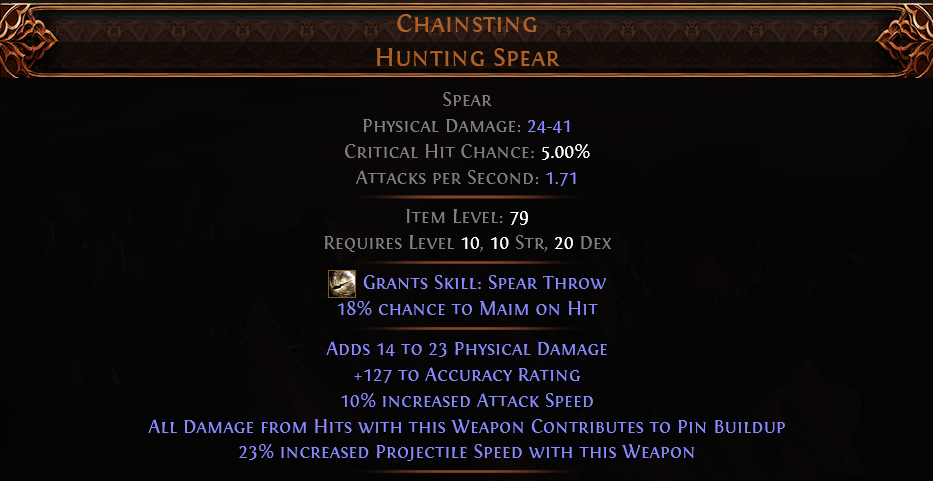 RISE OF THE ABYSS Chainsting Hunting Spear UNIQUE SPEAR LVL 10 REQ HUNTRESS SPEAR JAVAZON SPEAR AMA