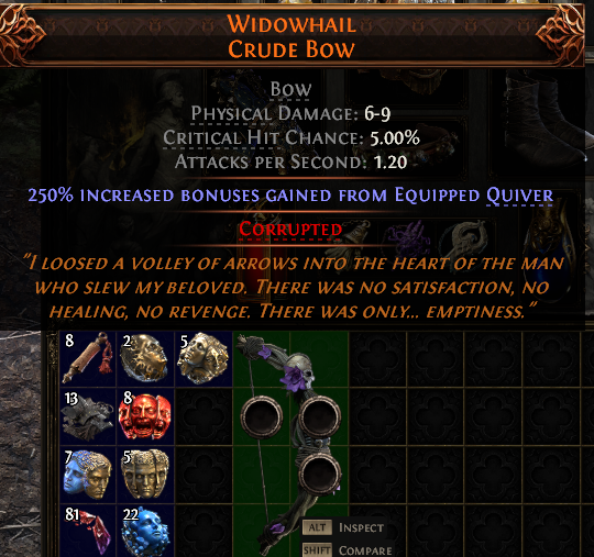 RISE OF THE ABYSSAL 3 SOCKET PERFECT WIDOWHAIL BOW NO LVL REQ 250% QUIVER BONUS +3 PERFECT RUNES