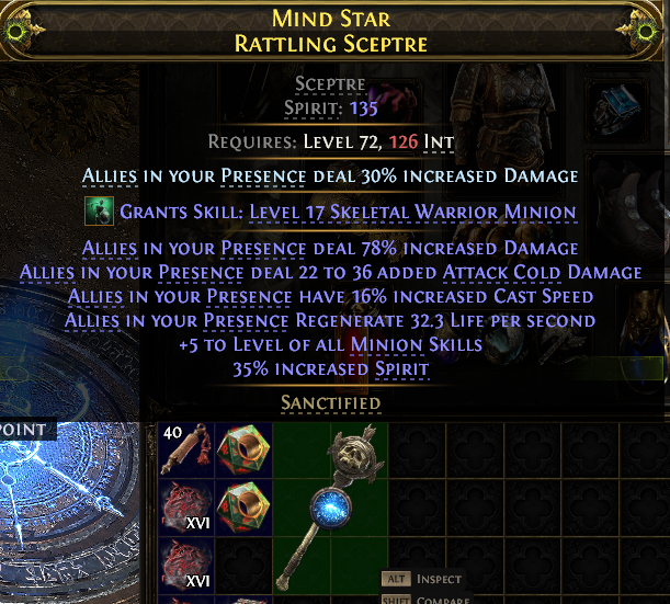 RATTLING SCEPTRE +5 MINION SKILLS 78% INCREASED DMG COLD DMG 16% CAST SPEED 135 SPIRIT INFERNALIST