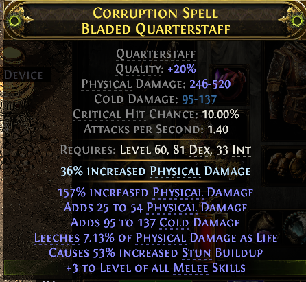 RISE OF THE ABYSSAL 698 DPS QUARTERSTAFF FOR MONK COLD DMG +3 MELEE SKILS LIFE LEECH LVL 60 REQ