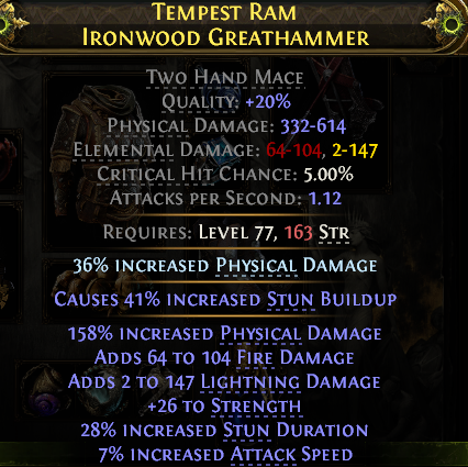 RISE OF THE ABYSSAL 707 DPS TWO HAND MACE FOR WARRIOR FIRE+LIGHT DMG ATTACK SPEED 26 STR