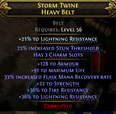 RISE OF THE ABYSSAL INSANE BELT 3 CHARM SLOTS 128 ARMOR 91 LIFE 22 STR 36% FIRE 57% LIGHTNING RESIST
