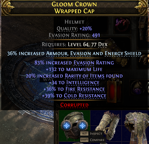 2 SOX 491 EVASION HELM 132 LIFE 20 RARITY 34 INT 36% FIRE 39% COLD RESIST RANGER MERCENARY MONK HUNT