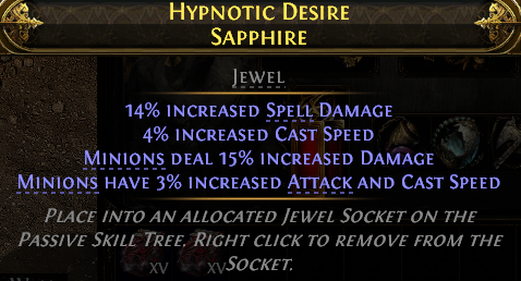 MINION JEWEL FOR WITCH 14% SPELL DMG 4% CAST SPEED 15% MINION DAMAGE 3% MINION ATTACK SPEED